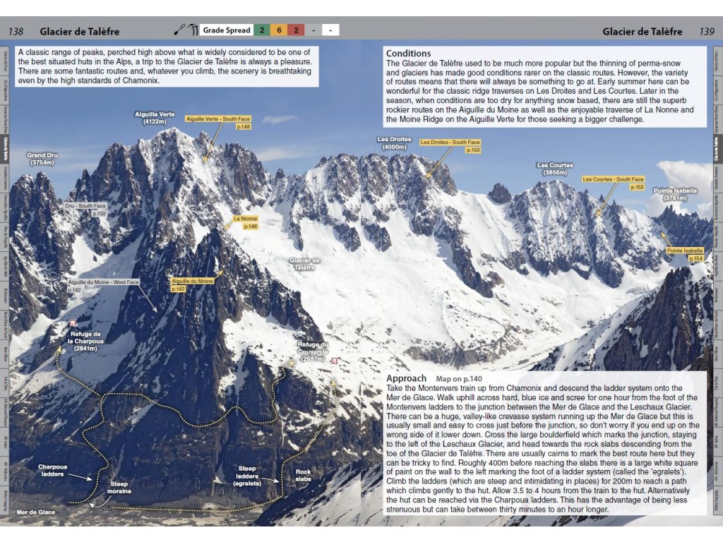 Nové vydání z konce roku 2025 (předchozí 2022) zahrnuje především aktualizace ohledně změn v přístupových trasách a nástupech do stěn v důsledku ústupu ledovce, nové slaňovací linie, změny v provozech vlaků a lonovek a přehled významných skalních řícení, která proběhly v posledních 3 letech.