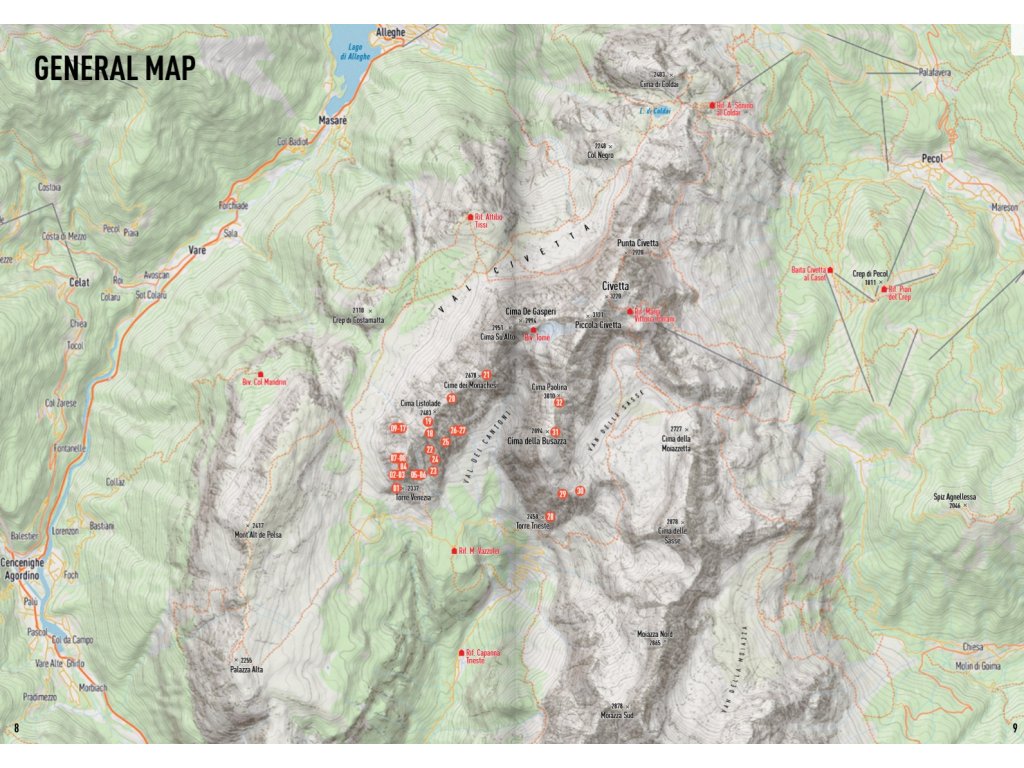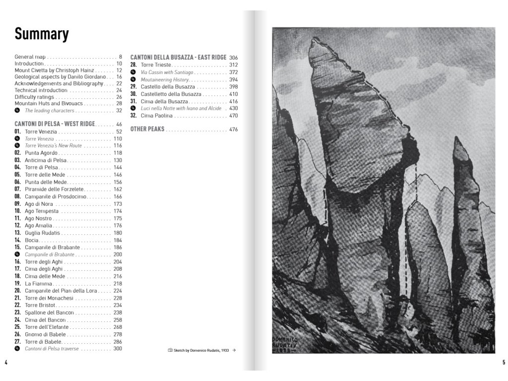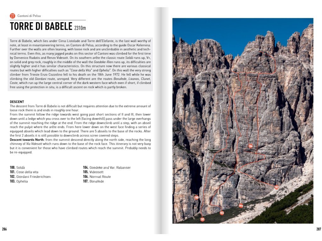 Dolomity, to jsou především větší či menší skalní věže, ale ty nejnavštěvovanější a nejoblíbenější jsou vlastně jen pouhými velkými skálami ve srovnání se sedmi sty metry Torre Trieste nebo jedenácti sty metry Busazza arête v jižní části rozlehlého masivu Civetta.