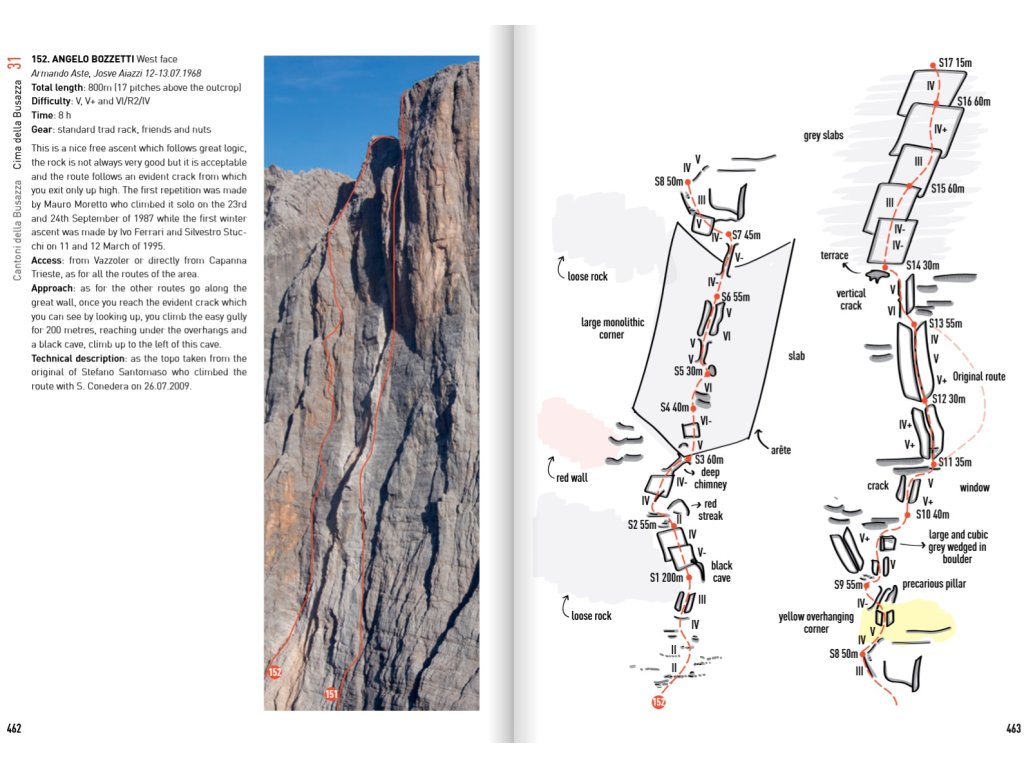 Při výstupu na Mussaiu máš pak dojem, že mezi dvěma velkými věžemi se nachází doslova labyrint vrcholů a věží, kterými jsou Cantoni di Pelsa a Cantoni della Busazza. Lezení pak zde představuje krátké nástupy, jednoduché sestupy, spoustu přirozených možností pro zajištění a slunce jižních stěn.