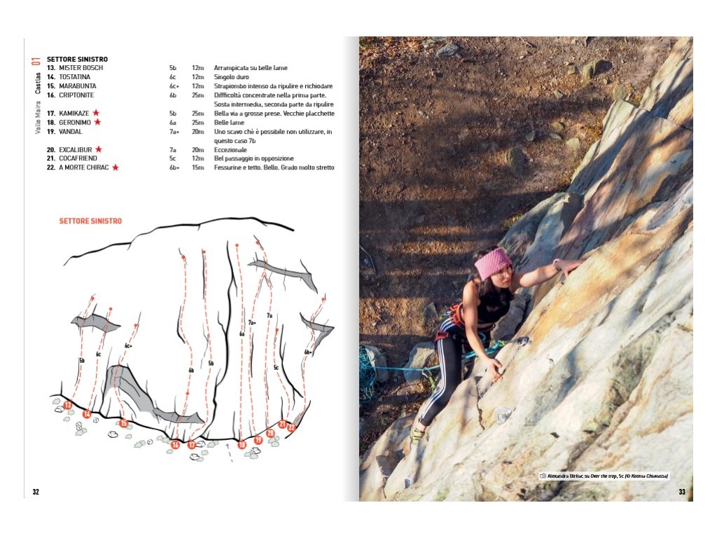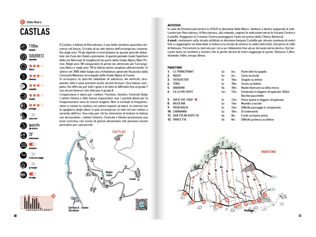 V knize najdeš všechny hlavní sektory v údolí Maira, Grana, Stura, Gesso a Vermenagna, včetně mimořádné skalní formace Casterino. A dále jsou tu lezecké sektory v údolí Ellero, Maudagna a Corsaglia a hlavní lokality údolí Tanaro, včetně slavného Pian Bernardo.