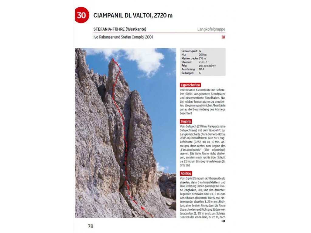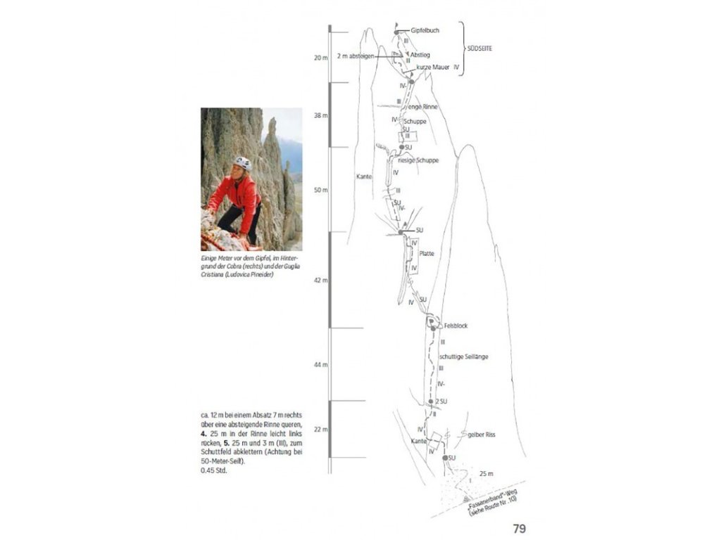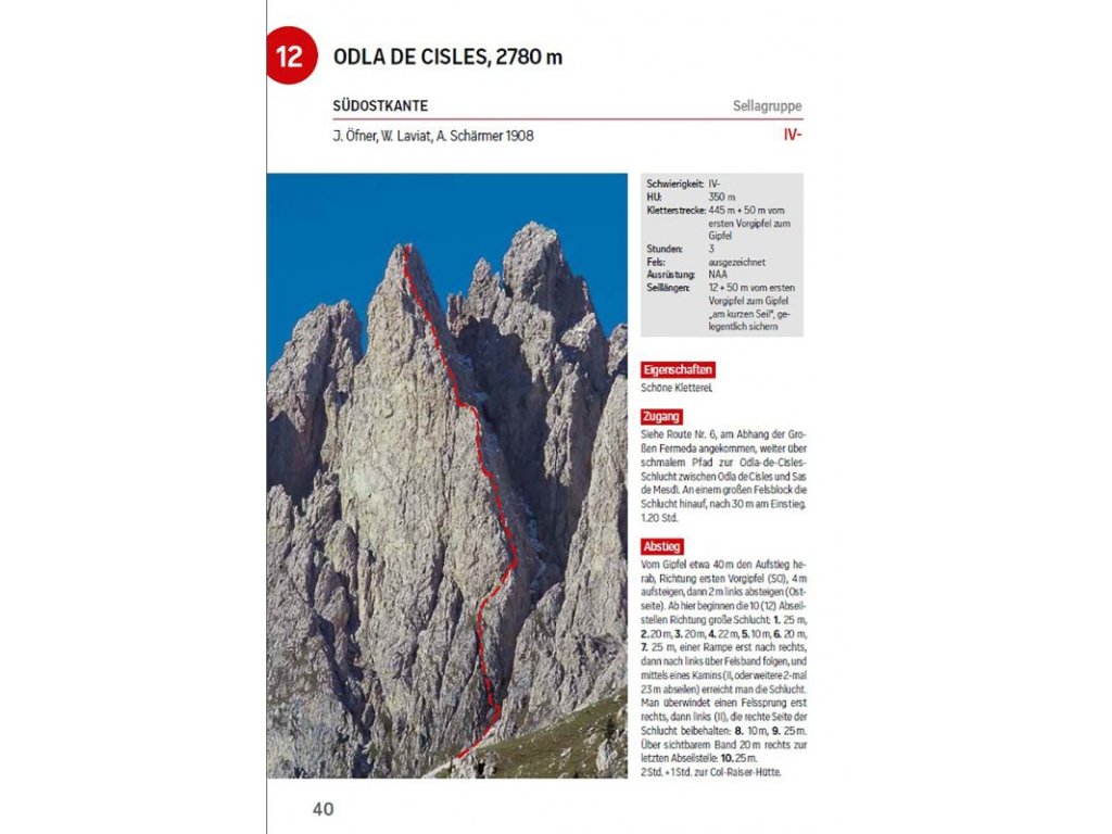 Tvrdit o konkrétních cestách, že jsou ty nejkrásnější, je vždy velice subjektivní, ale autor průvodce a horský vůdce Mauro Bernardi ví, o čem mluví, protože celé Dolomity jsou jeho domovskou oblastí. Málokdo z lezců pak o autorovi ví, že je to také bývalý vynikající lyžařský závodník, který stál několikrát na bedně Světového poháru a mimo jiné se účastnil i olympijských her v Lake Placid (1980). To jen tak pro zajímavost.