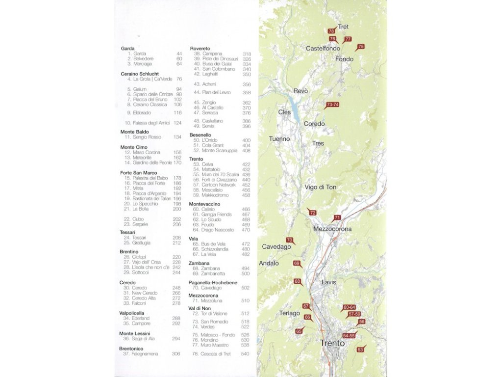 Popsané oblasti: Garda, Ceraino Schlucht, Monte Baldo, Monte Cimo, Forte San Marco, Tessari, Brentino, Ceredo, Valpolicella, Monte Lessini, Brentonico, Rovereto, Bessenello, Trento, Montevaccino, Vela, Zambana, Paganelle-Hochebene, Mezzocorona a Val di Non.