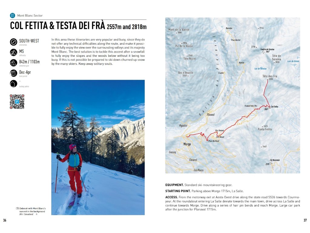 Kniha pokrývá celé Valle d’Aosta od severu k jihu, je výběrem toho nejlepšího, co můžeš na lyžích v celé oblasti zažít.